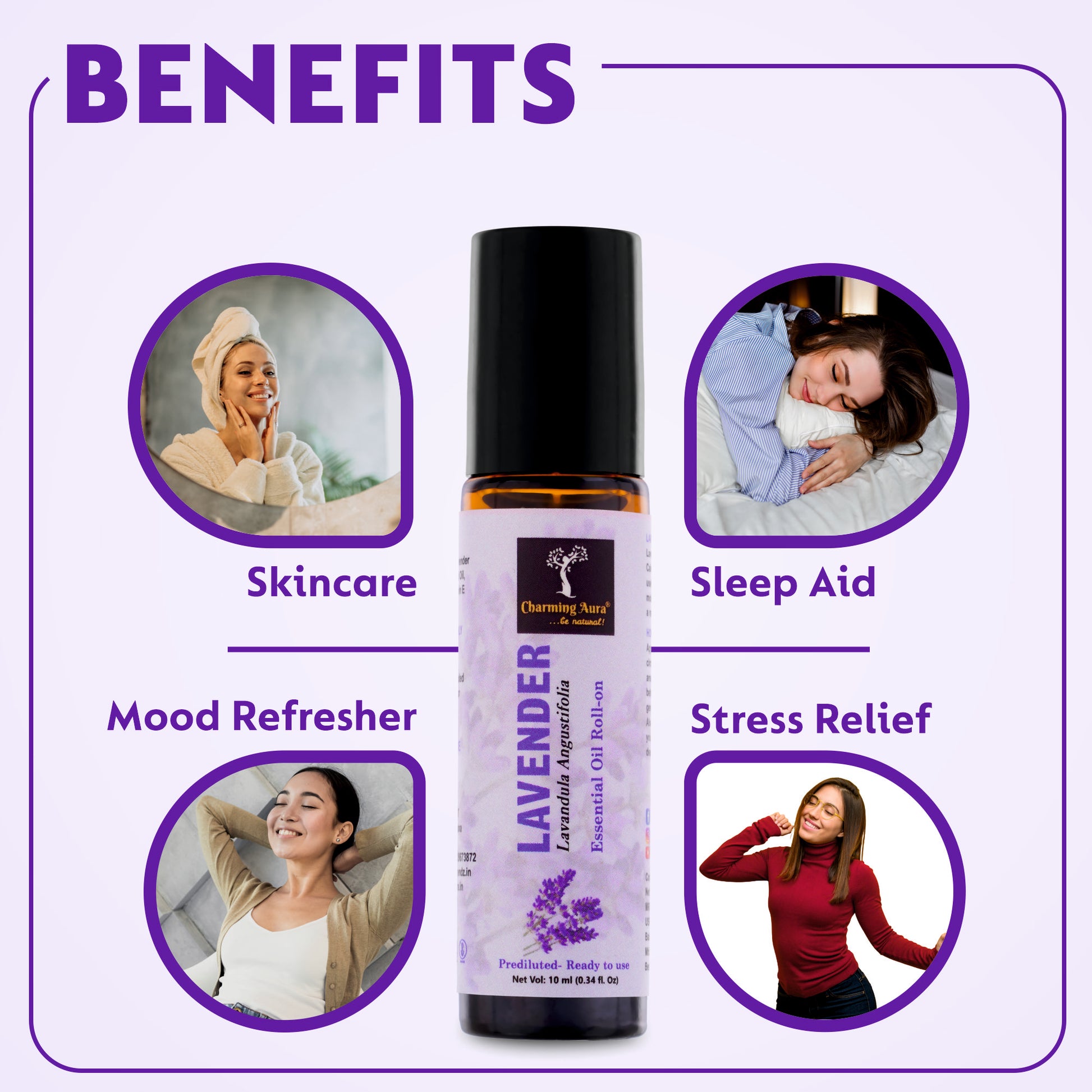 Lavender Essential Oil | Roll-On | Prediluted ready to use | Skin Care | Combats Negative Emotions | Stress Relief | Sound Sleep | 10ml |